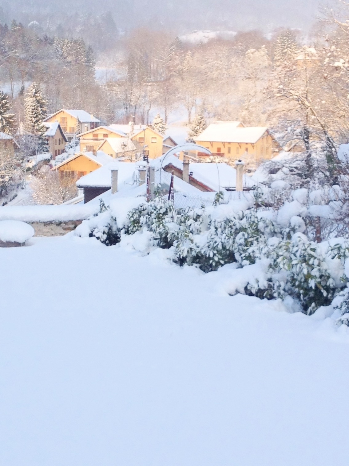 Hösten har varrit ganska regnig i år, och till allas stora förvåning blev det kallt och började snöa i slutet av november. Lagom till att vi hade bokat in oss på ett “prova slalomskidor” veckoslut i Zermatt. Så vi hade ordentligt med snö och faktiskt också ganska kallt under våra två dagar i backarna i Zermatt. Och väl tillbaka i Gex fortsatte det att snöa och hela nejden förvandlades till ett riktigt julpostkort. Vackert, men mördande för trafiken. Det finns alltför många som uppenbarligen aldrig byter bort sina sommardäck, så folk fastnar, åker av vägen, krockar eller envisas annars bara med att krypa fram i 30 km i timmen. Och att köra in till Geneve om det snöar eller regnar är helt dödfött. Då grötar allt ihop sig och trafiken står mestadels helt stilla.