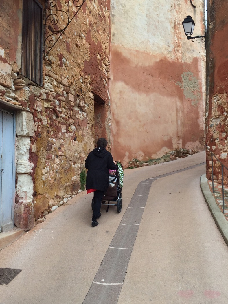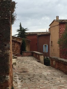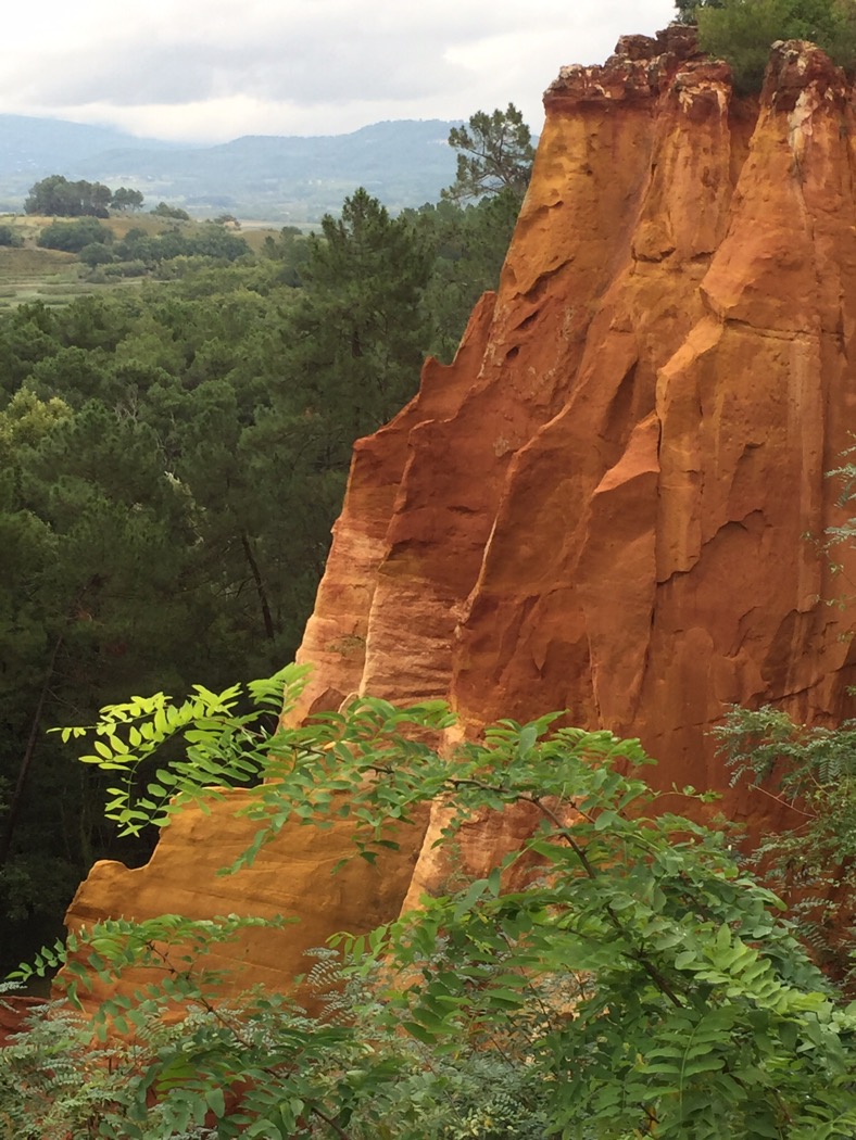 Hursomhelst, här lever man gott och relativt billigt, trots att trakten är så populär som den är bland utlänningar. Nu är det redan off season, men fortfarande är det folk från alla delar av världen i de populäraste turistmålen. Som t.ex. i Roussillion, den röda staden, som vi besökte igår. Marken runtomkring ger okra, gul, brun och röd, i alla olika nyanser, och trots att det inte mera är den industri det var på 1800 talet ger okran fortfarande inkomster i mindre skala. Inte minst genom turismen. Och visst var de färggranna klipporna sevärda, liksom också staden.