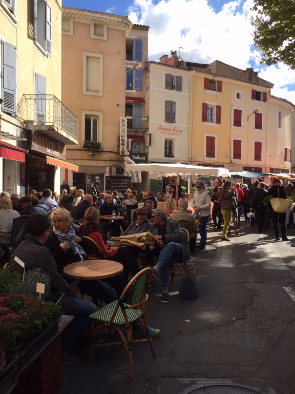 Markets are part of the joy of provencal life. Only part of going to a market is about buying stuff (although we always find something we feel we need). A big part of going to a market is just about being there. Walking around, enjoying the sunshine, looking at all the products on offer, looking at everybody else, meeting friends, having a cup of coffee or a glass of wine. All things that could be defined as “joie de vivre.”