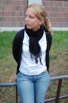 Andrea utanför hotellet