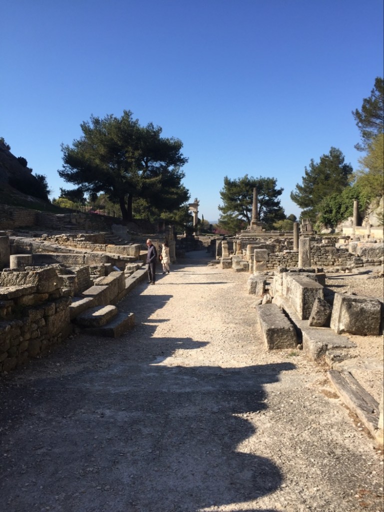We go for our Sunday walks in the Luberon. And yet. Even if everything is becoming very familiar, curiously enough there are always new things to explore. Like Glanum. Just beside the road outside Saint Remy de Provence lies a very well preserved old little city. Or village, perhaps. It originates in Hellenistic times, and was then taken over by the Romans, and abandoned in the middle of the second century AC. Lovely to see, quite a surprise.